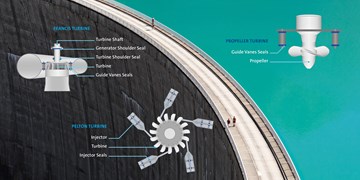 Mit anwendungsspezifischen Dichtungen und Materialien ermöglicht Freudenberg Sealing Technologies eine hohe und nachhaltige Ausbeute bei der Energiegewinnung aus Wasserkraft.